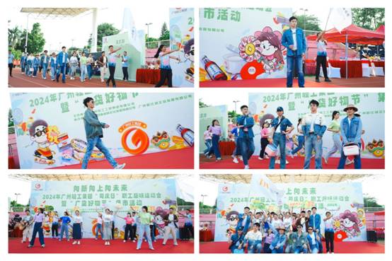 在運動會出場儀式上,紡織公司代表隊時尚亮相,展示旗下新品牌產(chǎn)品,身穿自主設(shè)計的“GOGO”牌牛仔系列,手挽輕巧實用的“冰大師”塑料箱,踏歌伴舞生動演繹“美好生活,輕工相伴,向新向上,夢想璀璨”的開心快樂剪影,巧妙推廣輕工“廣貨”品牌文化,贏得全場熱烈互動和雷鳴般掌聲!