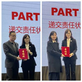 接著,事業(yè)部及職能部門負責人分別向朱劍碧董事長遞交了2026年度經(jīng)營目標、維穩(wěn)綜治、安全生產(chǎn)、環(huán)境保護等責任書。