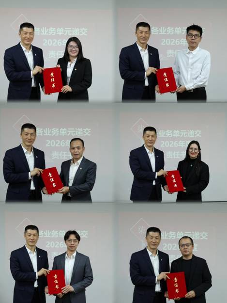 各業(yè)務(wù)單元、部門(mén)向公司領(lǐng)導(dǎo)遞交2026年度各項(xiàng)目標(biāo)管理責(zé)任書(shū)。