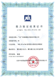 NIL PT-4745瀝青防水卷材拉伸測(cè)試能力驗(yàn)證結(jié)果滿意證書(shū)